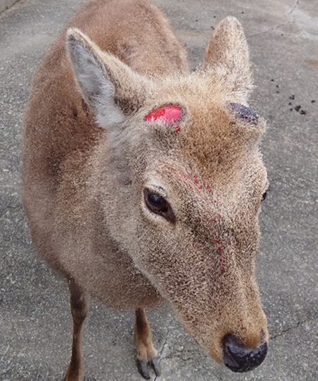 シカの角は、10月立派に完成したところで、シカ同士の闘争によるケガを防ぐためと、