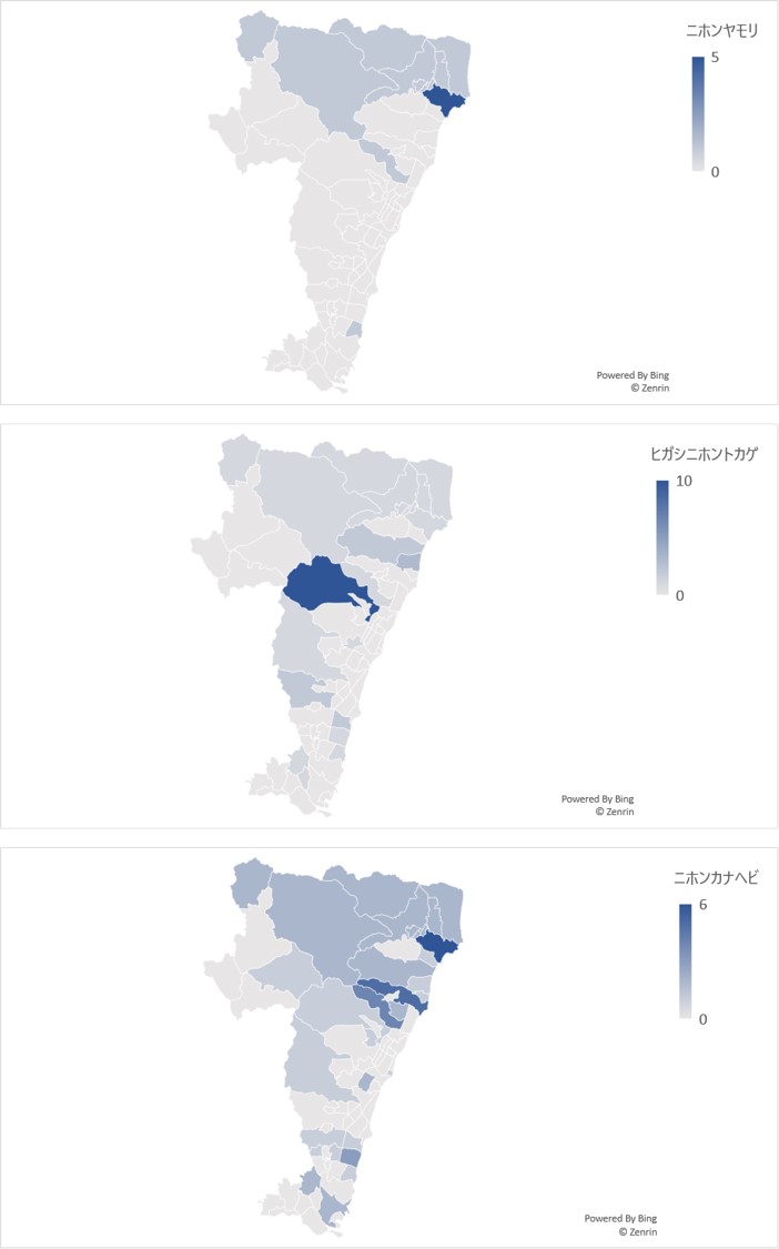 どの種も、県内に広く分布しているようですね。