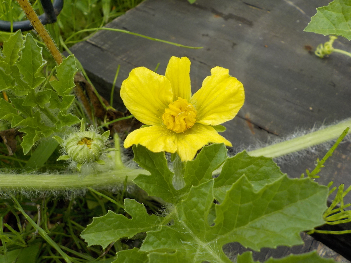 スイカは黄色い花を咲かせます。この時に虫によって受粉して実をつけます。