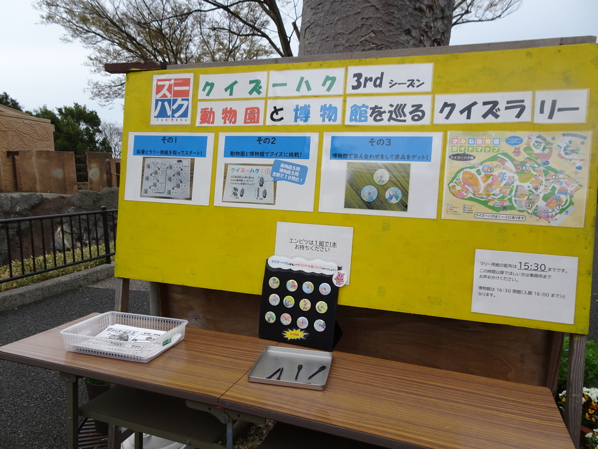 3月15日から4月13日の期間、郷土博物館との連携イベント「クイズーハク~動物園と博物館を巡るクイズラリー~」を開催しました。