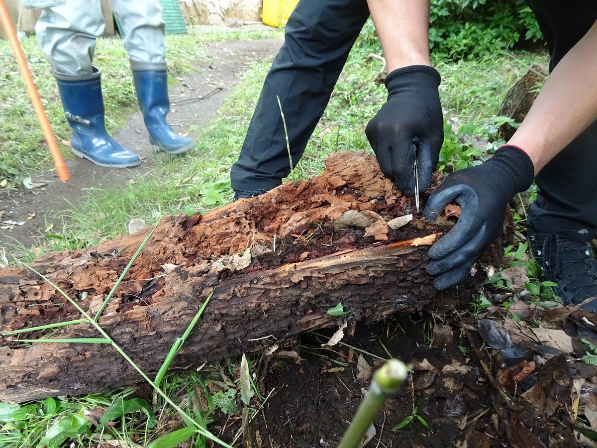 参加された方とイベント担当の動物園スタッフが一緒に動物園内を回り、池の周りや木の裏など、普段はあまり見かけないような場所を探して回りました。